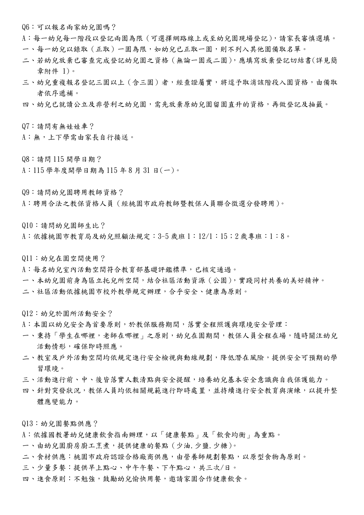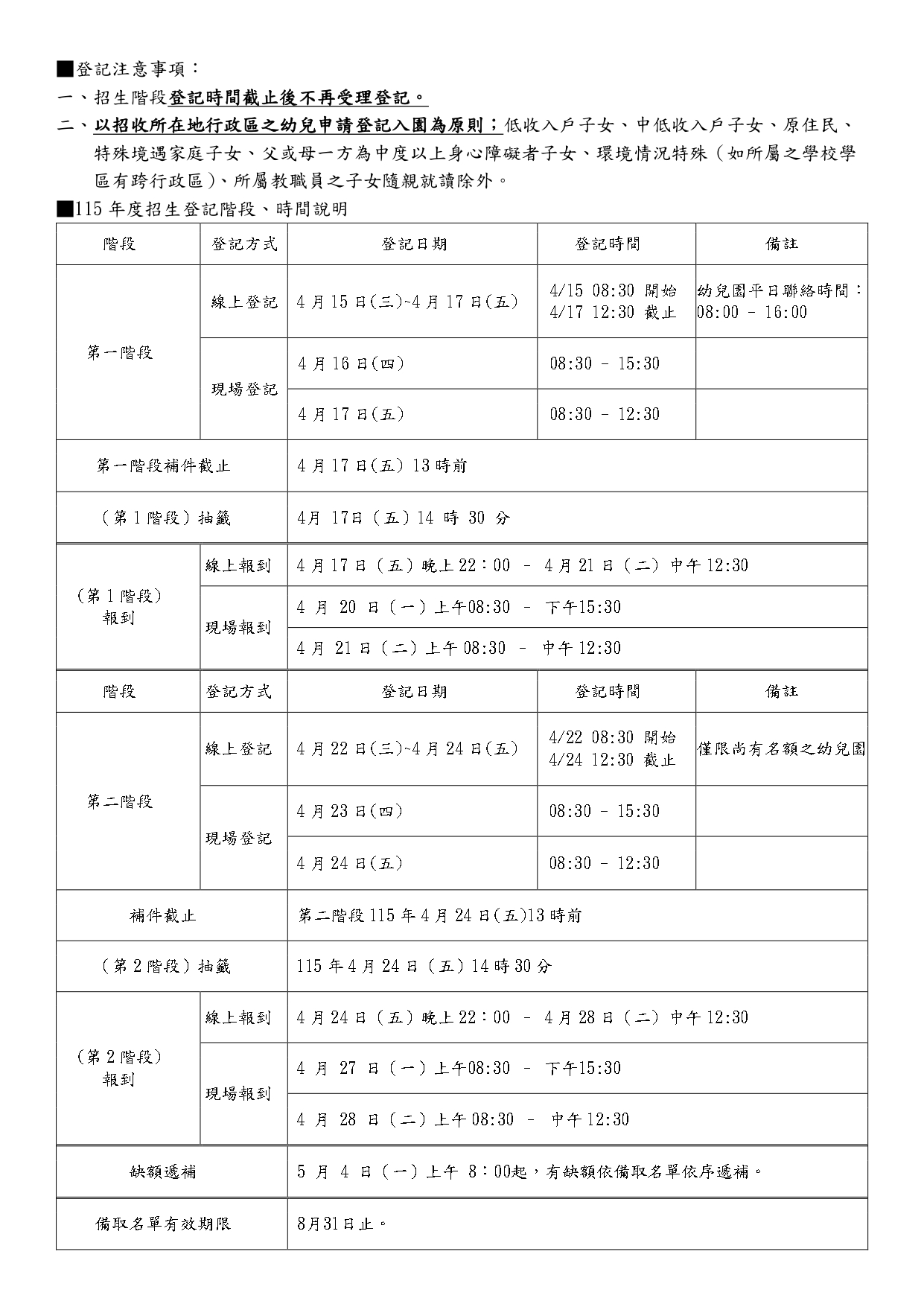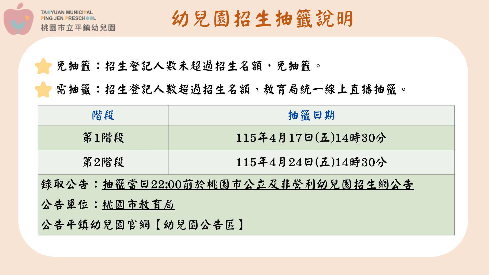 幼兒園公告