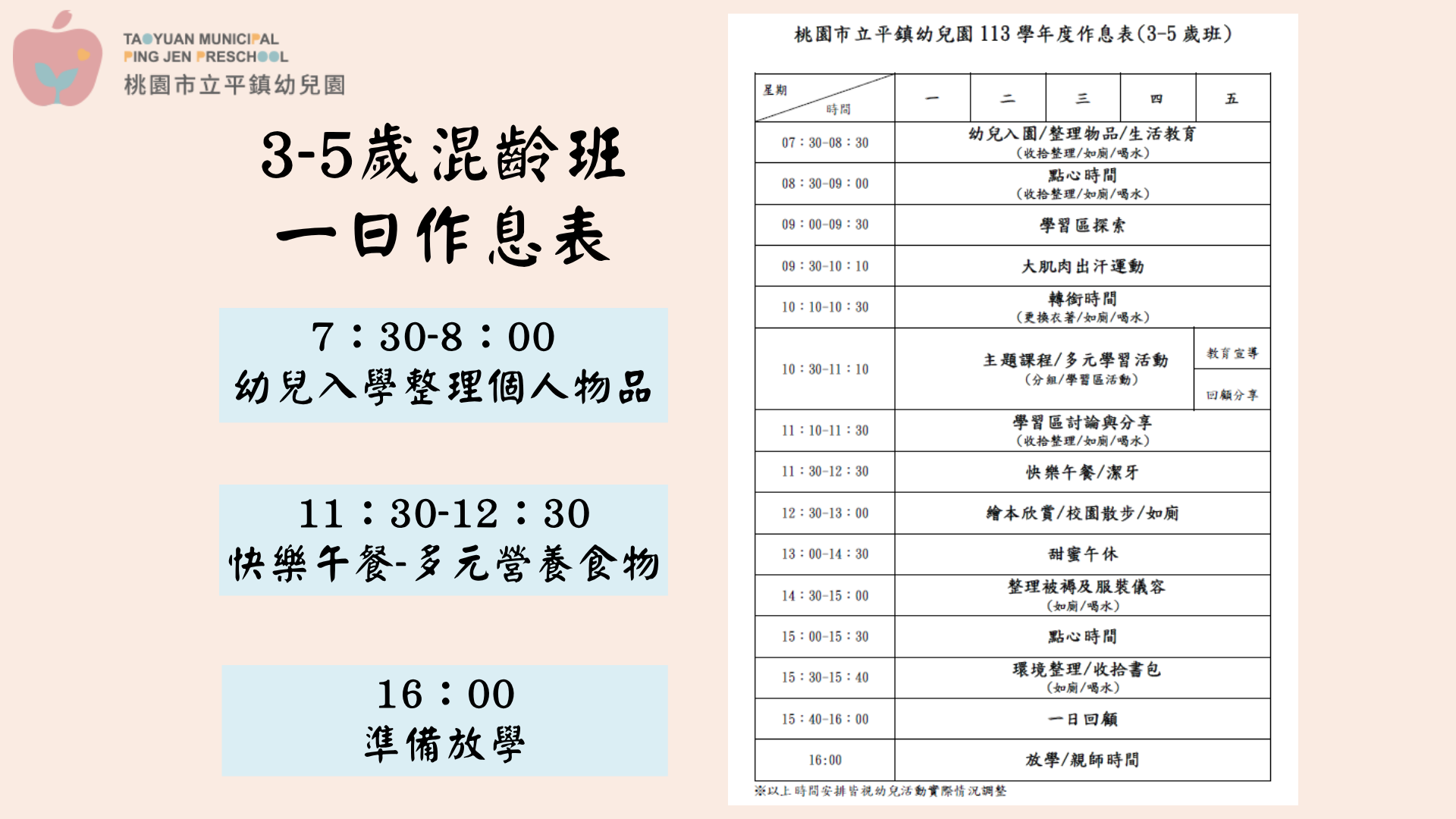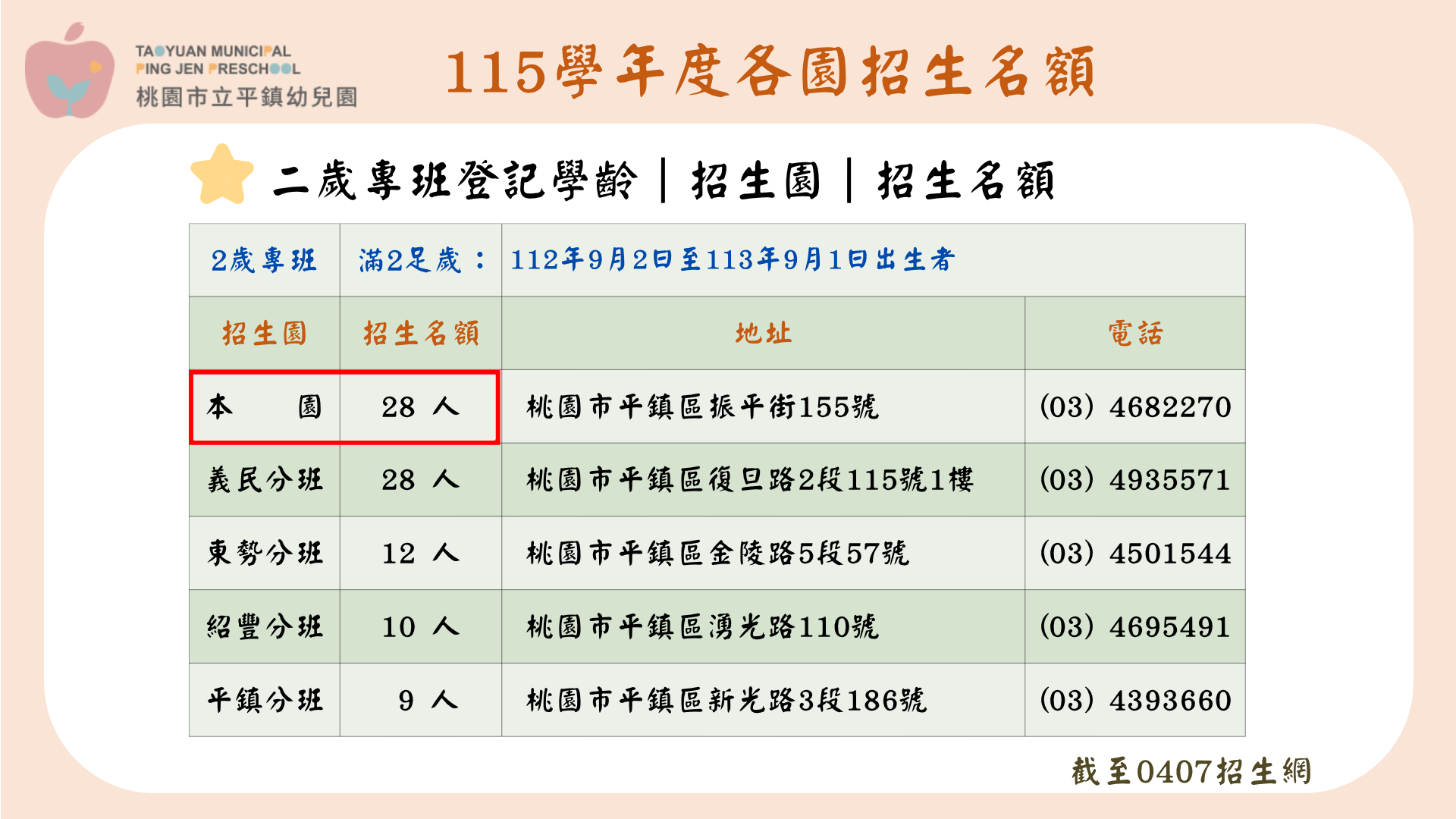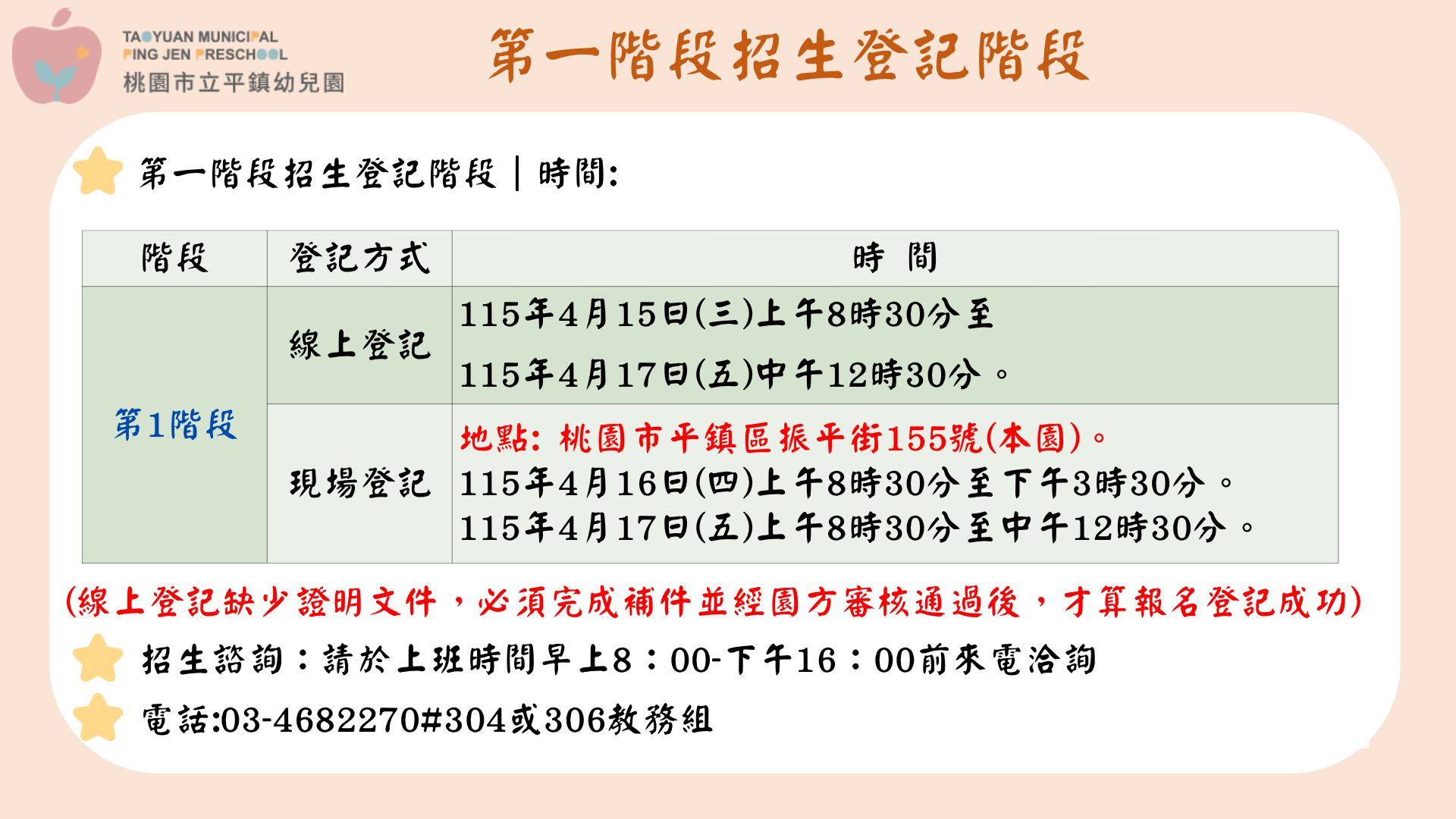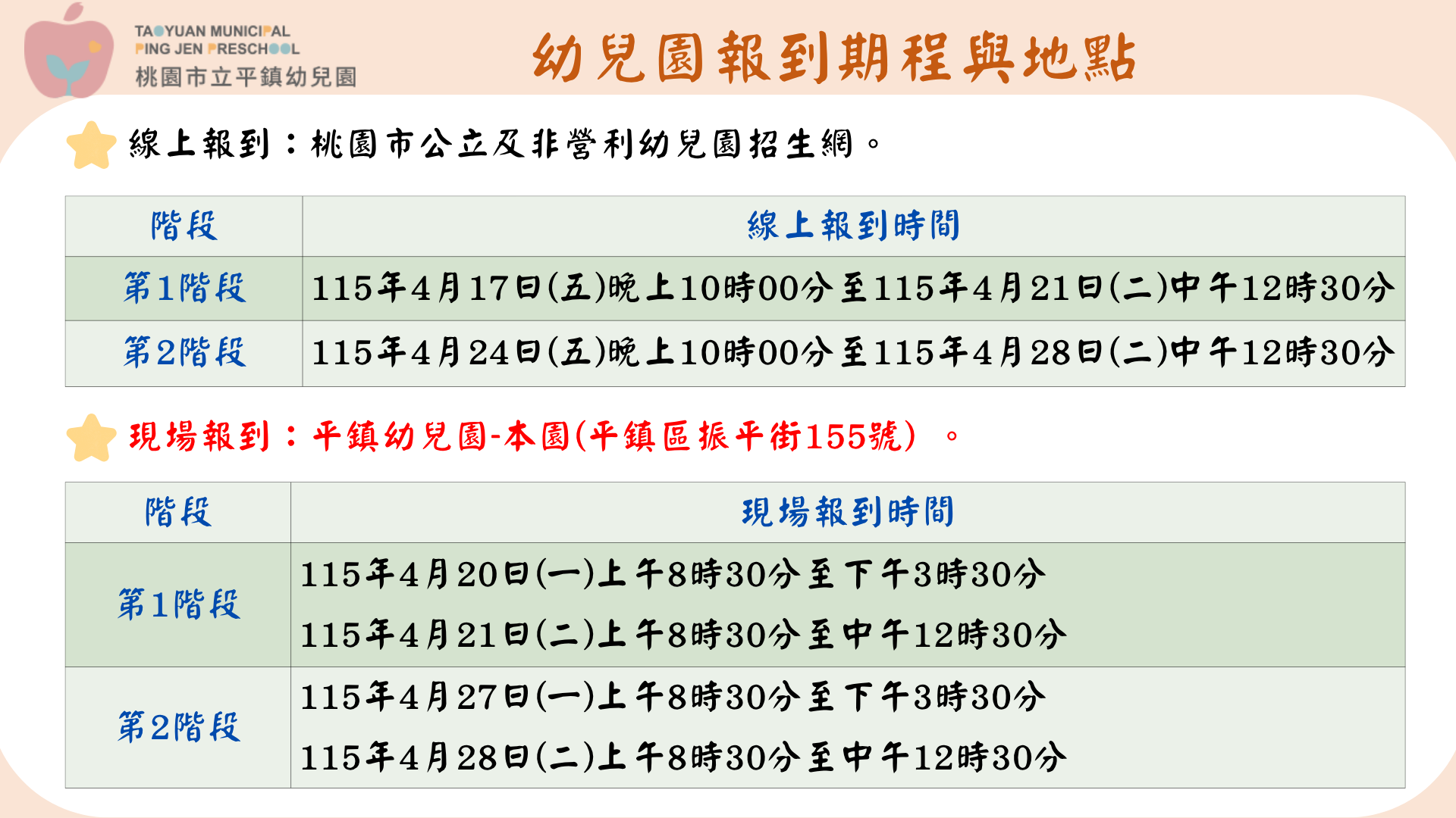 幼兒園公告
