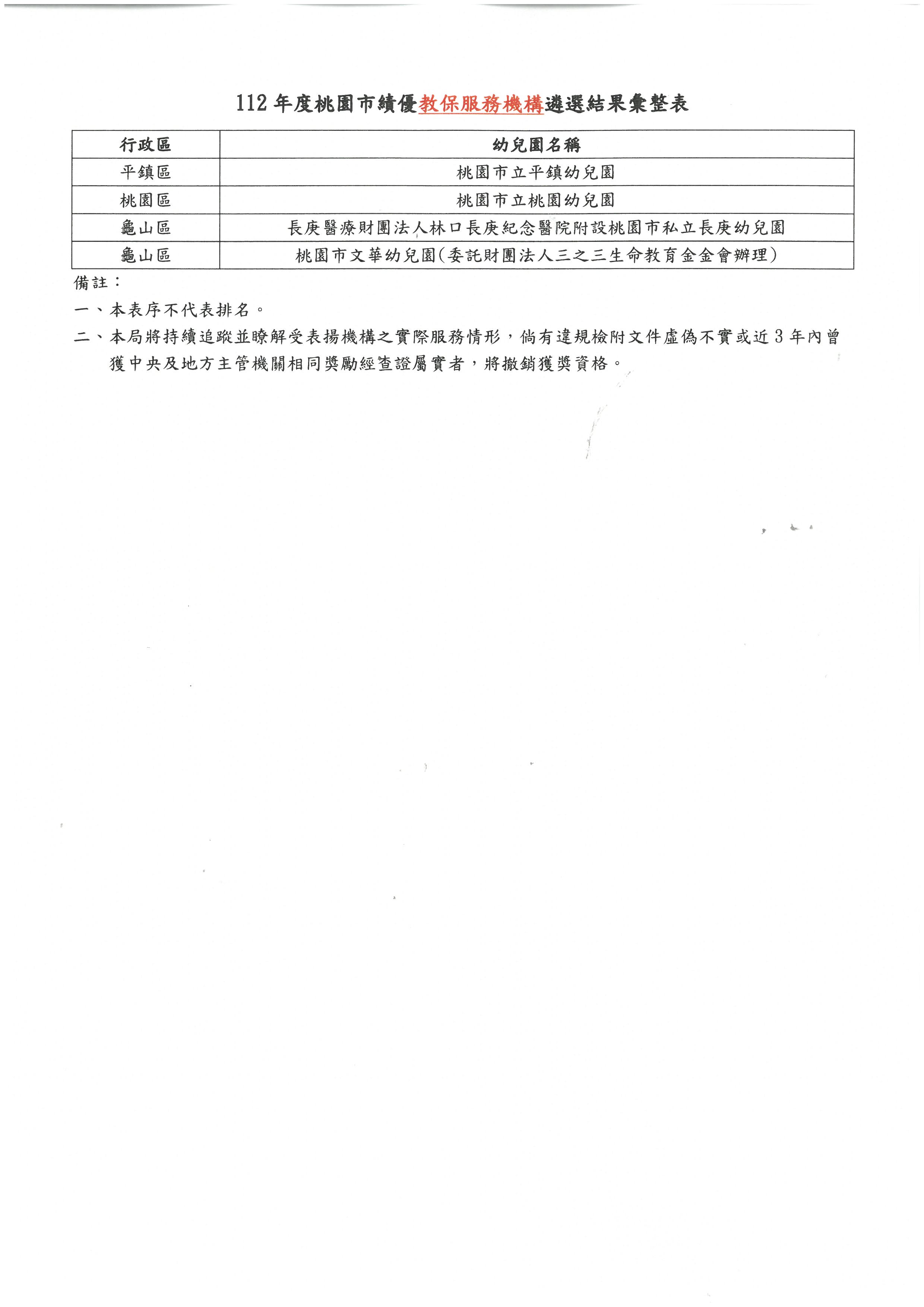 平鎮幼兒園榮獲桃園市112年度績優教保服務機構
