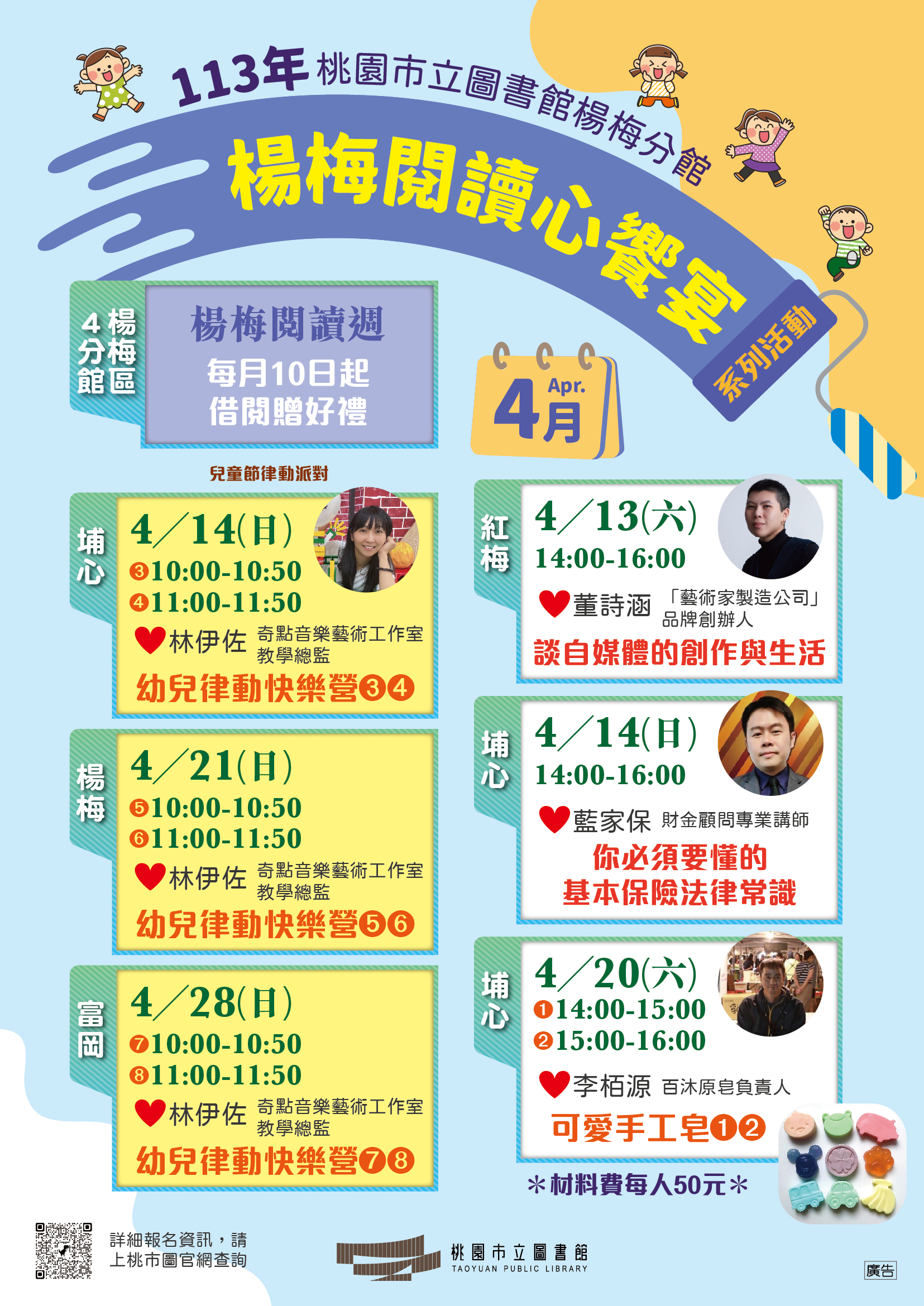 桃園市楊梅圖書館辦理【楊梅閱讀心饗宴】系列活動, 歡迎報名參加!