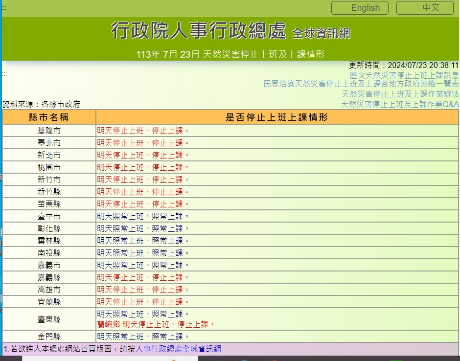 【7月24日停課通知】中颱「凱米」來勢洶洶,7/24停止上班、停止上課。