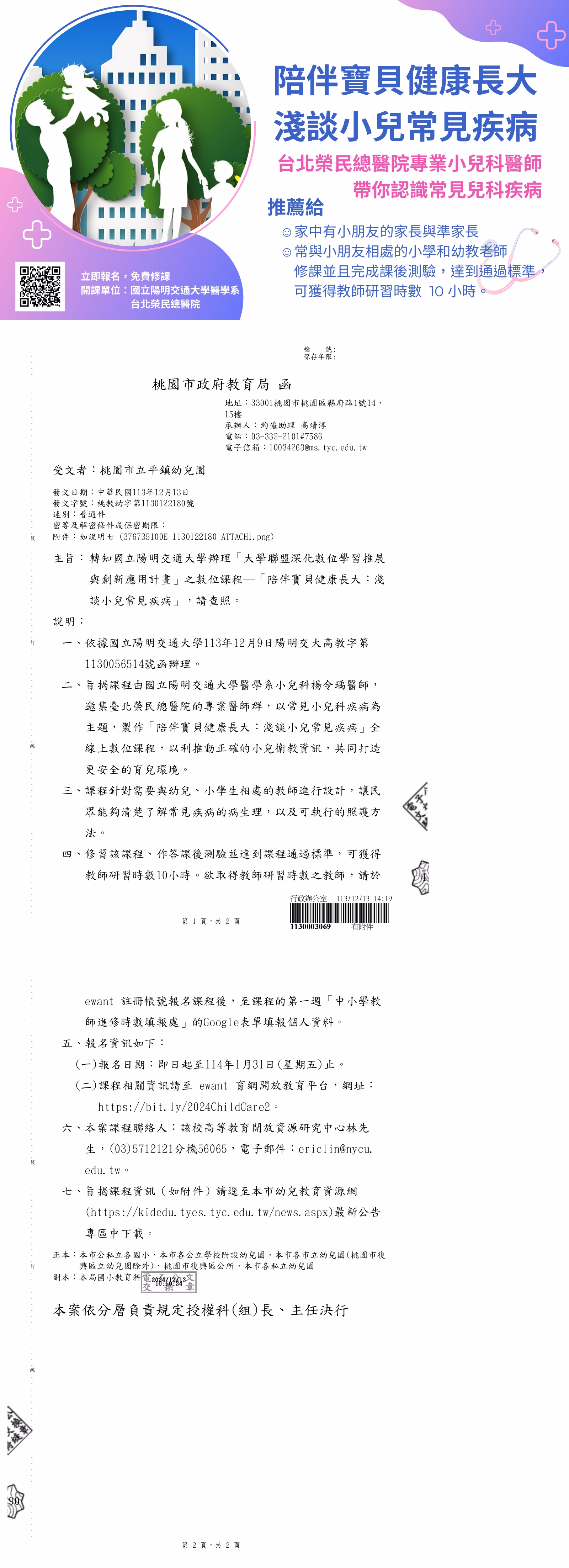 陽明交通大學辦理小兒常見疾病照護線上研習
