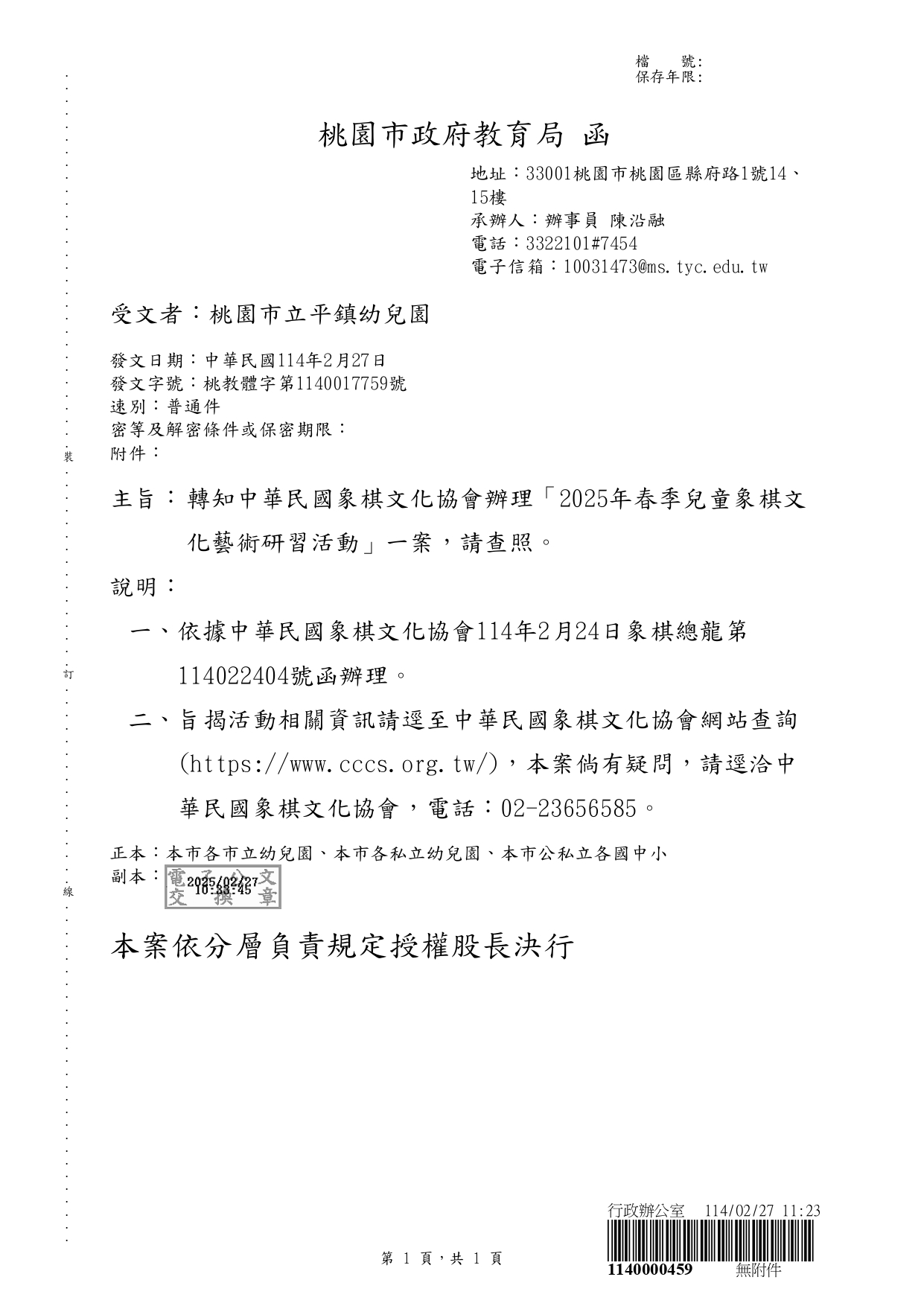 中華民國象棋文化協會辦理「2025年春季兒童象棋文化藝術研習活動」