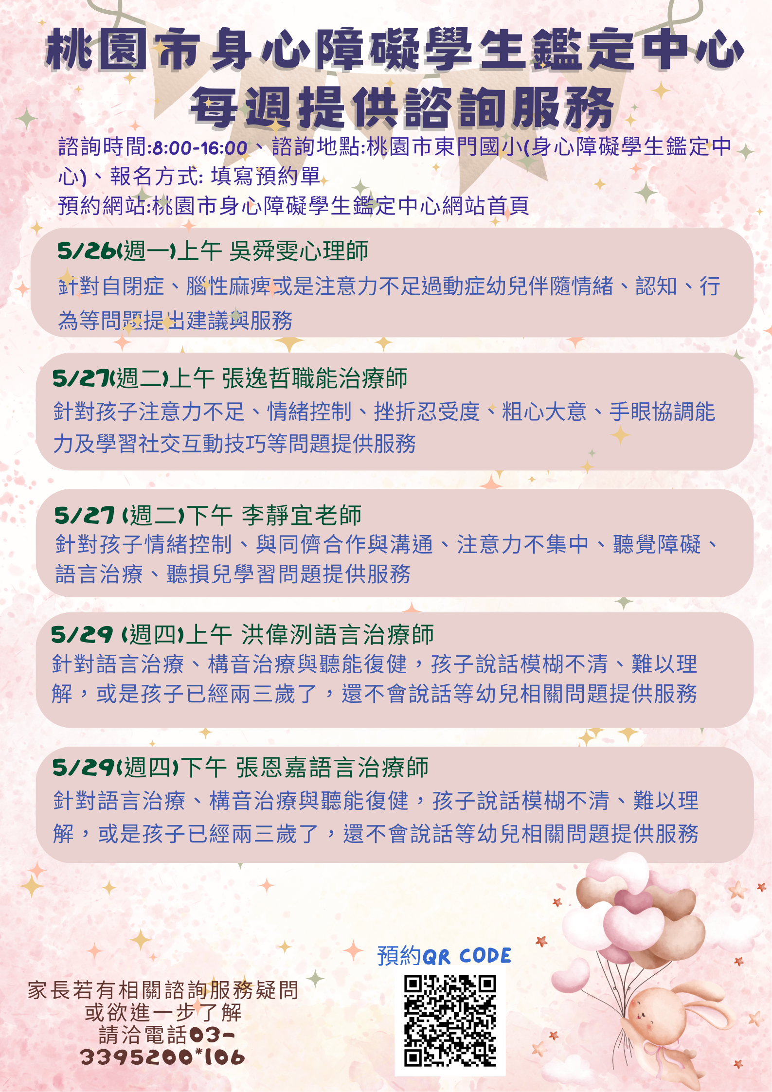 桃園市身心障礙學生鑑定中心提供老師及家長諮詢服務