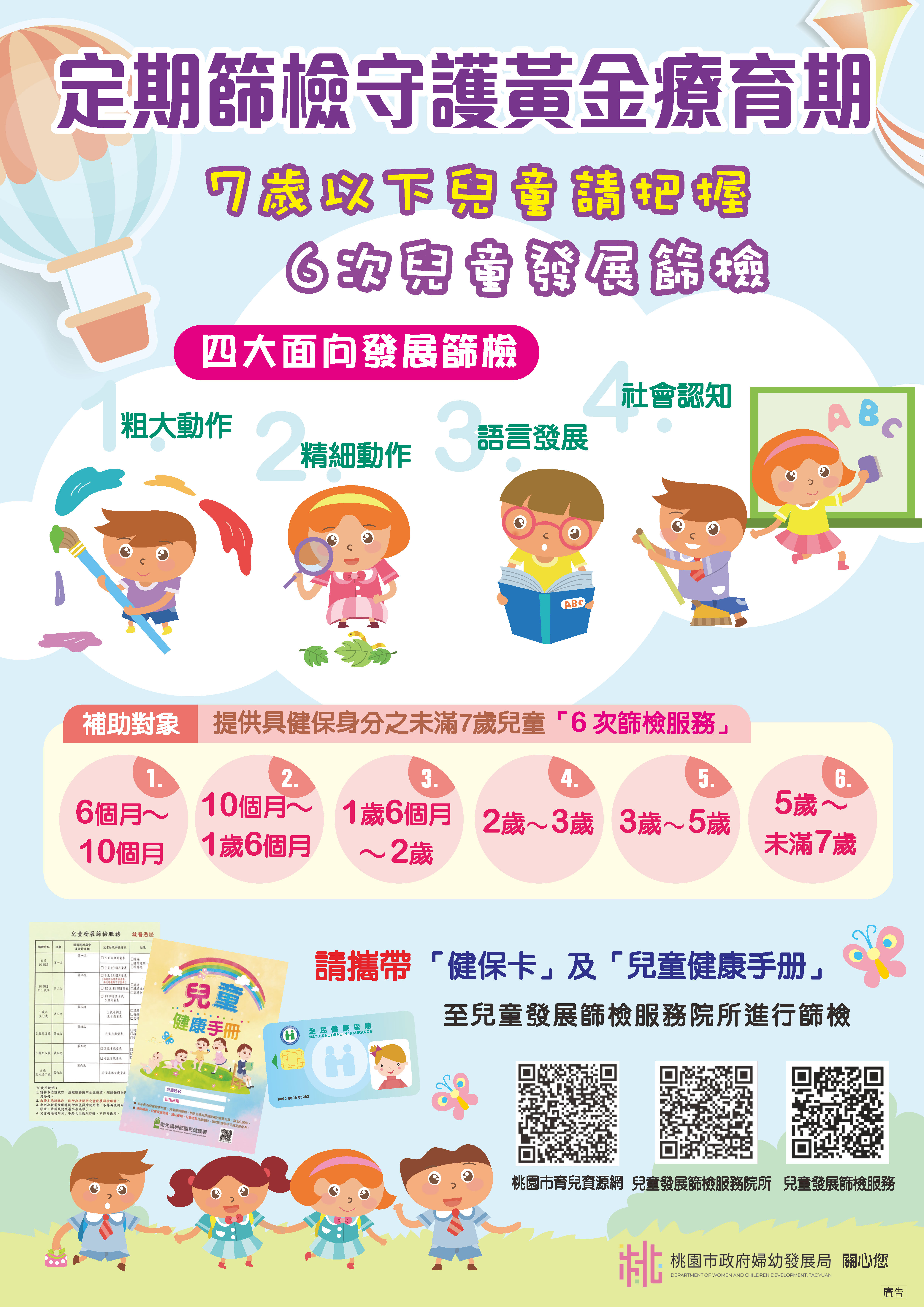 桃園市政府婦幼發展局製作兒童發展篩檢服務宣導單張協助推廣家長知悉
